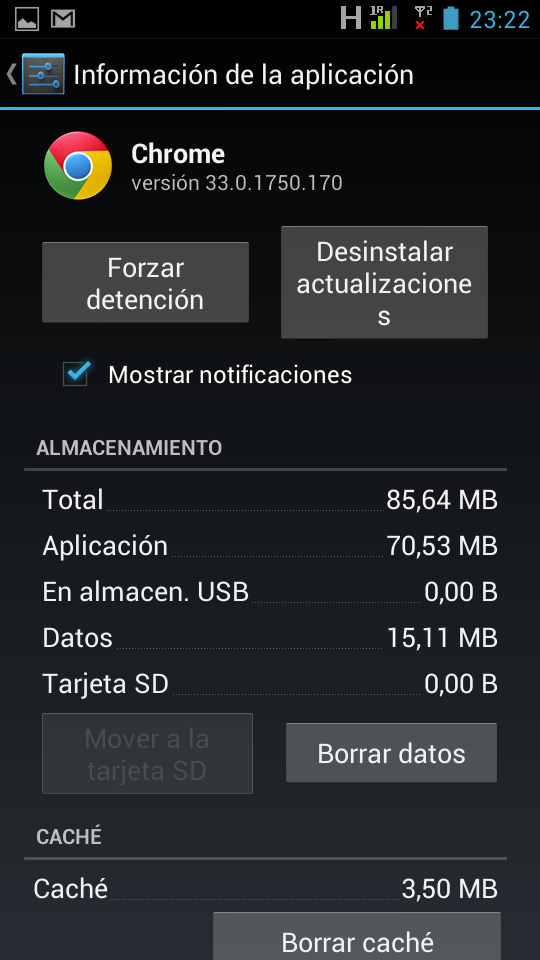 Otra forma es aprovechar que estás en la Información de la aplicación y Mover a la tarjeta SD, si el programa lo permite y tienes tarjeta SD.