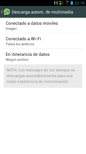 Mención aparte merece el servicio de mensajería más utilizada en nuestro país. Por Whatsapp los usuarios se intercambian a diario infinidad de mensajes, imágenes y vídeos. La aplicación almacena en el dispositivo toda esa información ocupando un espacio nada despreciable. Una opción útil será desactivar la descarga automática de archivos en las conversaciones (Whatsapp->Ajustes->Descarga automática multimedia). De este modo podremos seleccionar manualmente qué archivos de los que recibimos queremos bajar. Espero que os sirva para mejorar el uso de vuestro teléfono.Recuerda que puedes contactar conmigo para ayudarte a que tu experiencia con tus gatges electrónicos sea lo más satisfactoria posible.